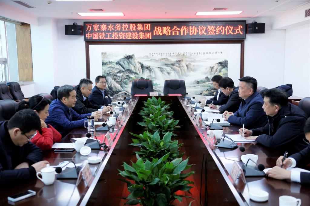 12月4日,萬家寨水務(wù)控股集團(tuán)黨委書記、董事長陳耳東,黨委委員、副總經(jīng)理曹池與中國鐵工投資建設(shè)集團(tuán)黨委書記、董事長張建國一行就進(jìn)一步加強(qiáng)合作再次進(jìn)行會(huì)談,并簽訂戰(zhàn)略合作框架協(xié)議。
