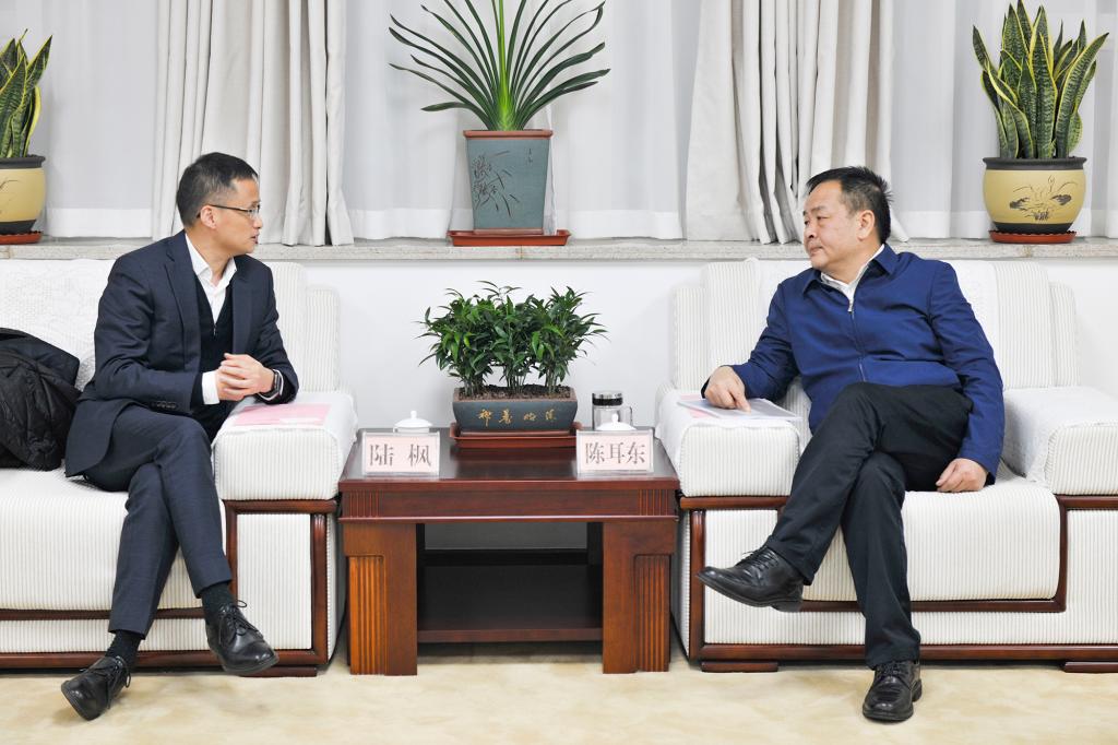 11月25日,萬家寨水務(wù)控股集團黨委書記、董事長陳耳東,黨委委員、副總經(jīng)理李俊剛會見中國國際金融股份有限公司債券大區(qū)董事、總經(jīng)理陸楓一行,萬家寨水務(wù)控股集團相關(guān)部室、中心,中國國際金融股份有限公司相關(guān)人員參加。