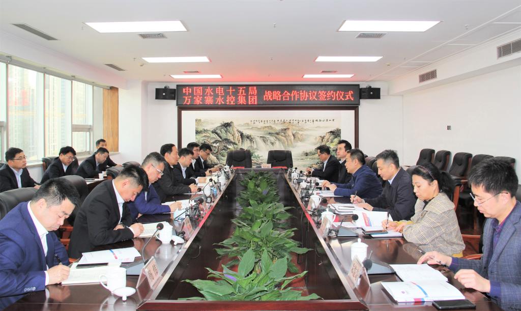 3月29日,萬家寨水控集團黨委書記、董事長陳耳東,黨委委員、副總經理曹池與中國水電十五局黨委書記、董事長梁向峰,黨委委員、副總經理李鵬一行舉行工作會談,雙方就進一步加強溝通對接、拓寬合作領域進行深入交流,并簽署戰略合作協議。