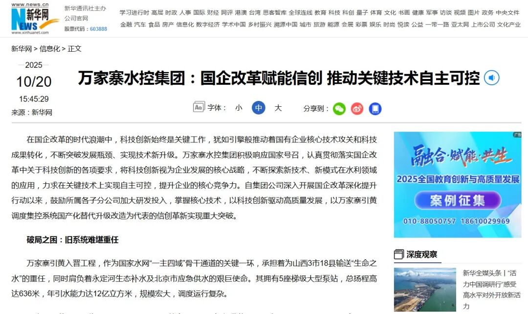 近日,新華網(wǎng)、科技日?qǐng)?bào)、中國水利報(bào)、工人日?qǐng)?bào)等多個(gè)國家級(jí)媒體將鏡頭對(duì)準(zhǔn)萬家寨水控集團(tuán),聚焦國企改革信創(chuàng)工作,通過多維度、多篇幅、深層次報(bào)道,重點(diǎn)展現(xiàn)企業(yè)將科技創(chuàng)新作為高質(zhì)量發(fā)展的核心戰(zhàn)略,持續(xù)提升核心競爭力的實(shí)踐成效。