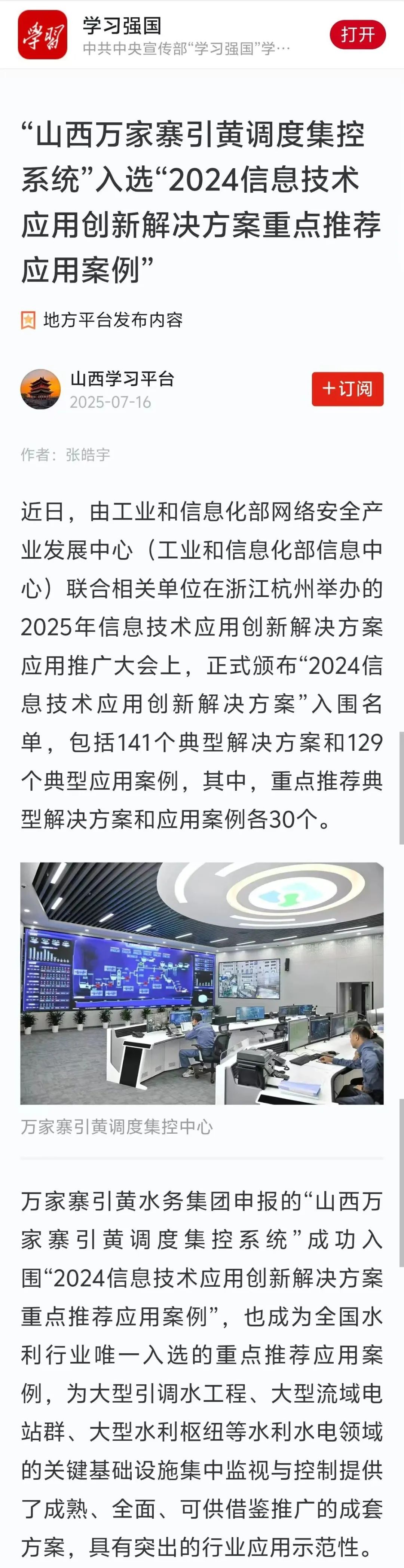 為加快信息技術(shù)應(yīng)用創(chuàng)新,實現(xiàn)核心技術(shù)自主可控,“山西萬家寨引黃調(diào)度集控系統(tǒng)”的重點推薦引發(fā)省內(nèi)主流媒體廣泛關(guān)注……
