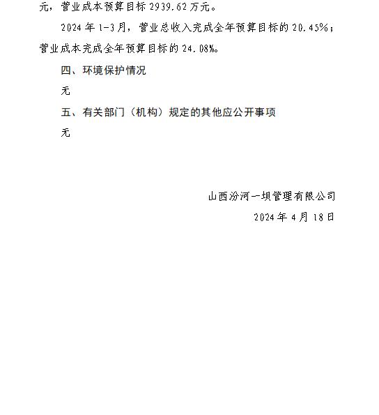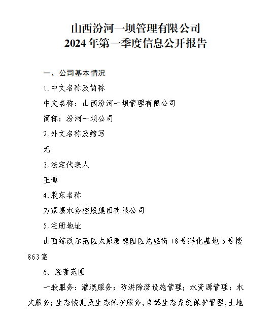 山西小浪底引黃水務(wù)集團有限公司2024年第一季度信...