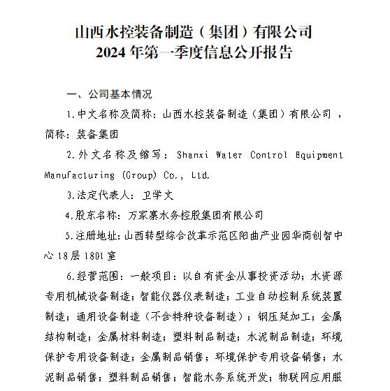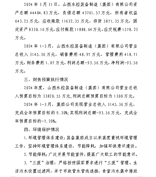 山西汾河灌溉管理有限公司2024年第一季度財務(wù)等重...