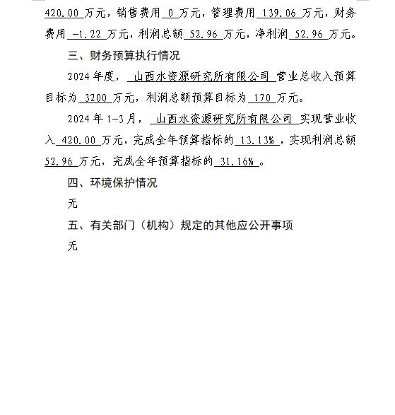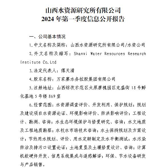 山西水投汾景水務(wù)有限公司2024年第一季度信息公開...