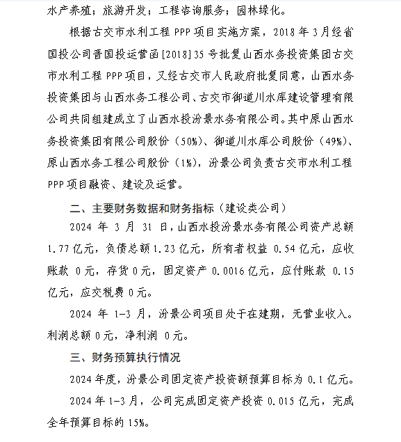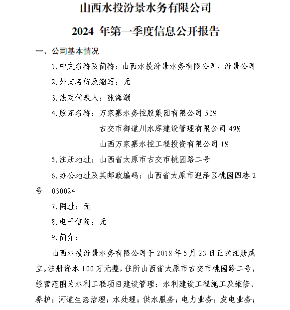 山西水務(wù)集團建設(shè)投資有限公司2024年第一季度信息...