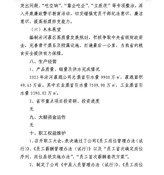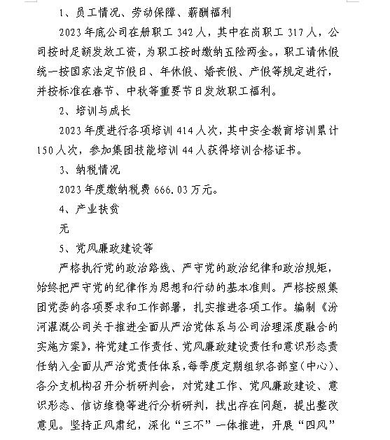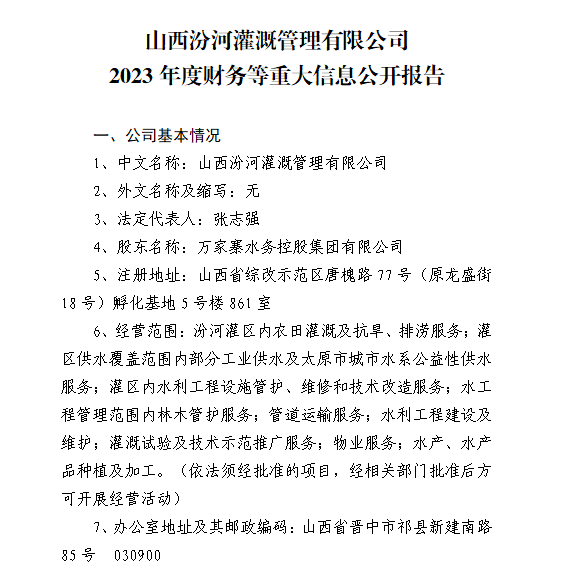 山西中部引黃水務集團有限公司2024年第一季度信息...