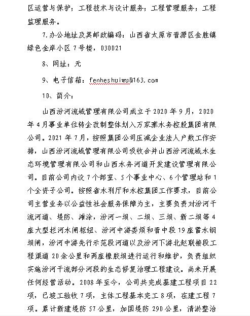 山西汾河流域管理有限公司