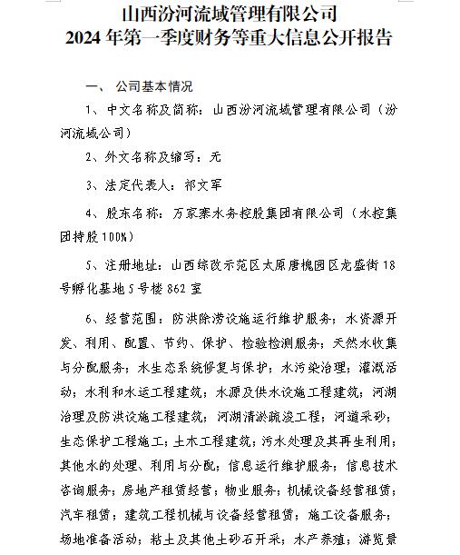 山西東山水務(wù)集團(tuán)有限公司2024年第一季度財務(wù)等重...