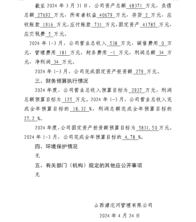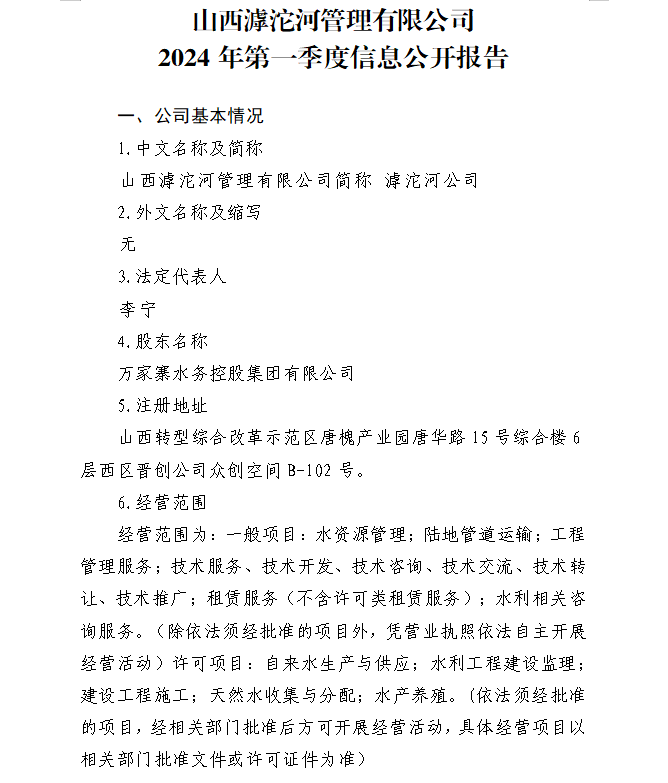 山西沁河水務(wù)集團(tuán)有限公司2024年第一季度信息公開(kāi)...