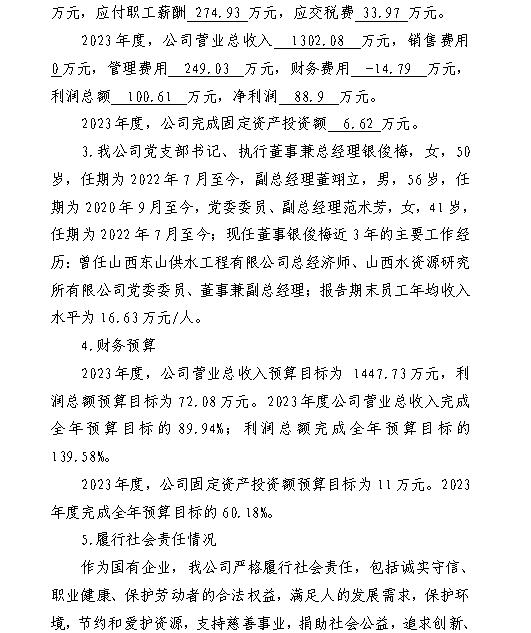 山西汾河一壩管理有限公司2023年度財務等重大信息...