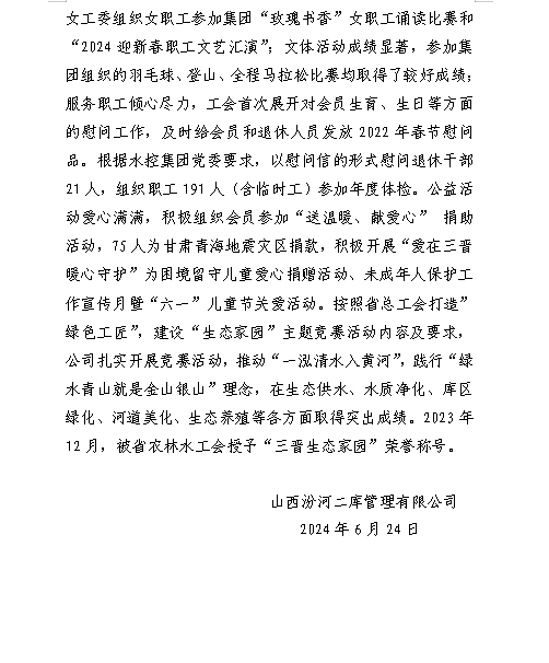山西漳河水務(wù)集團有限公司2024年第一季度信息公開...