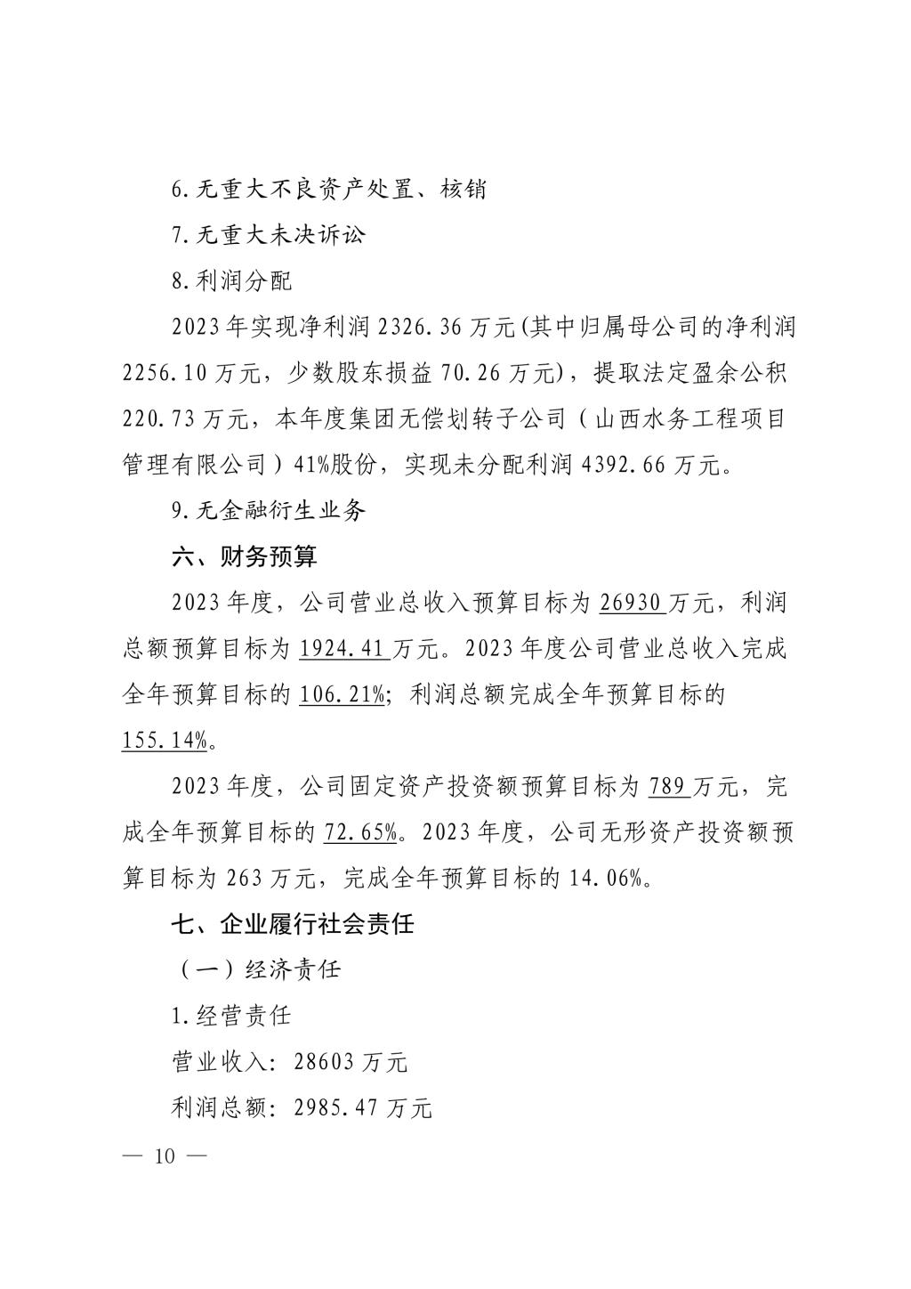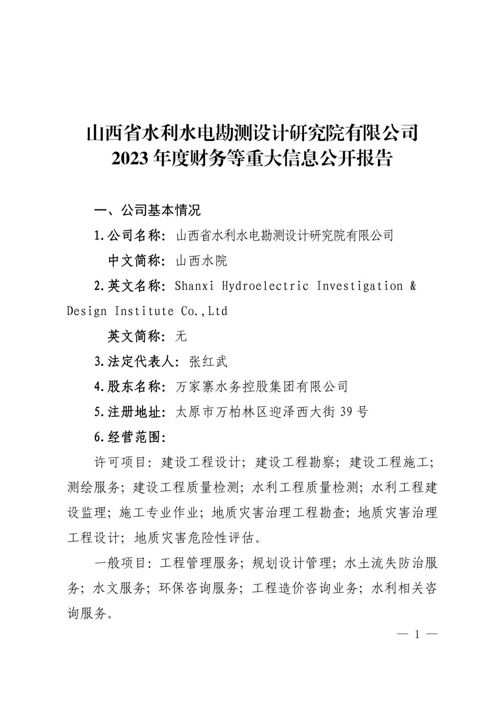 山西中部引黃水務(wù)集團有限公司2023年度重大信息公...