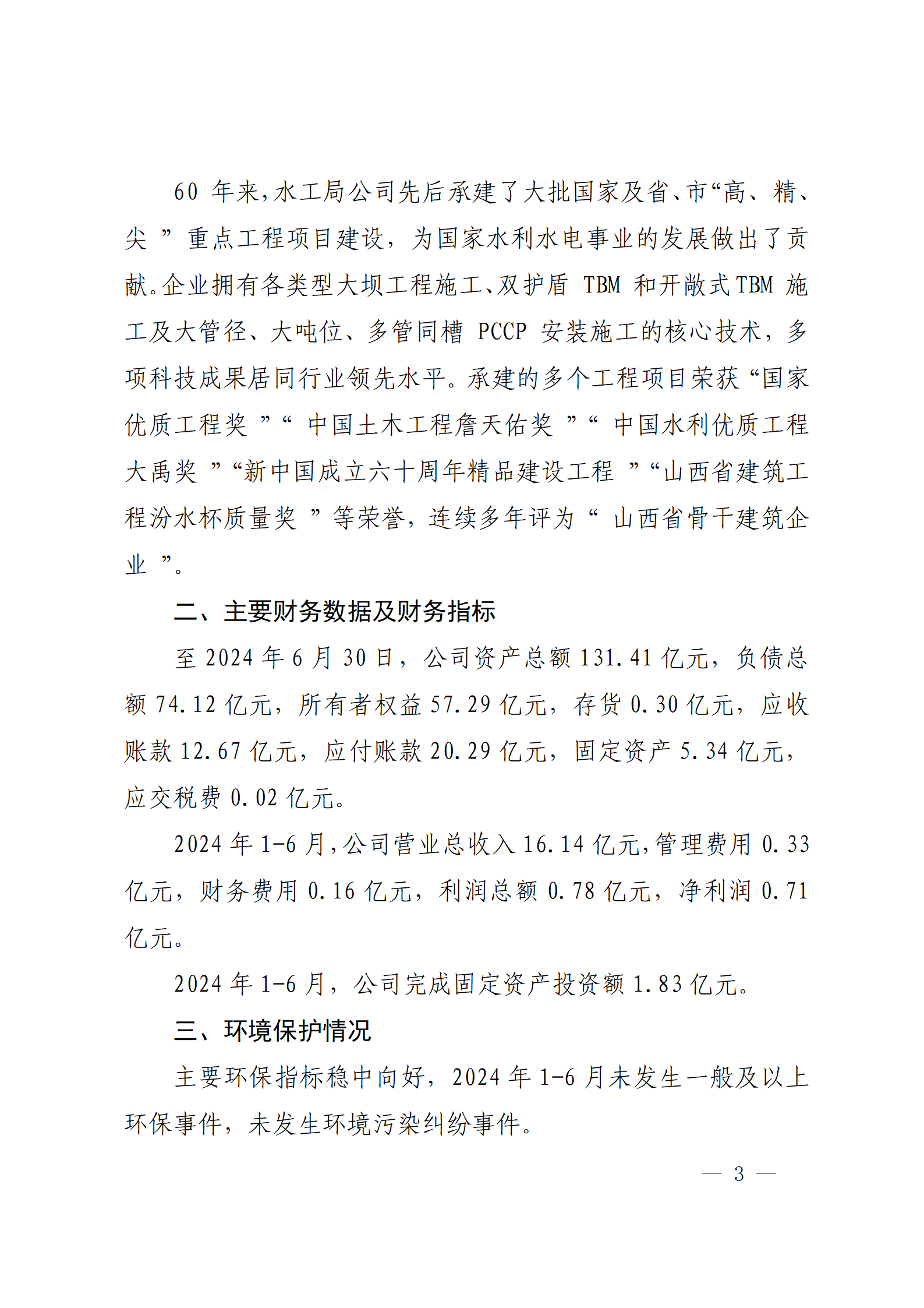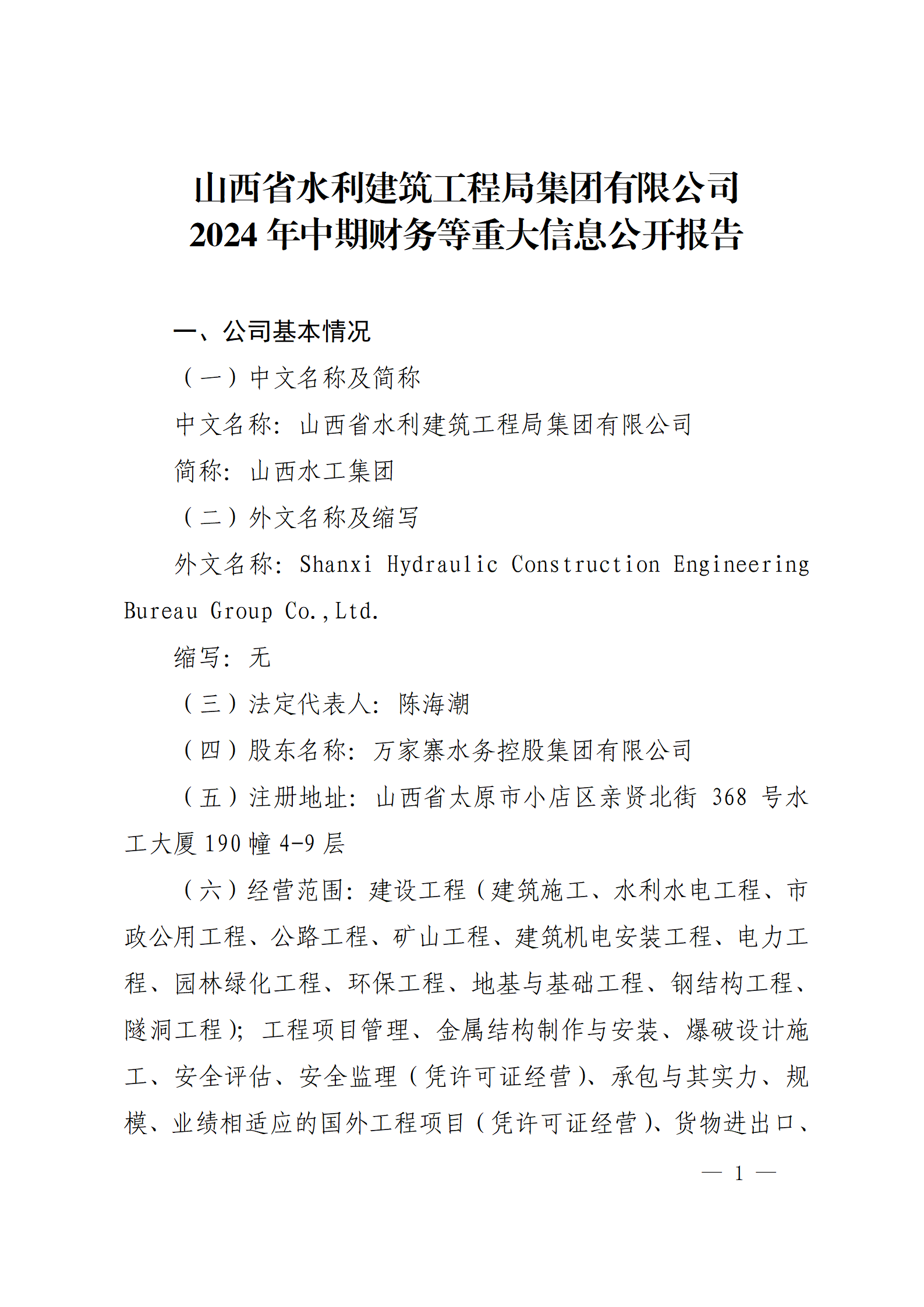 山西汾河流域管理有限公司2024年中期財(cái)務(wù)等重大信...