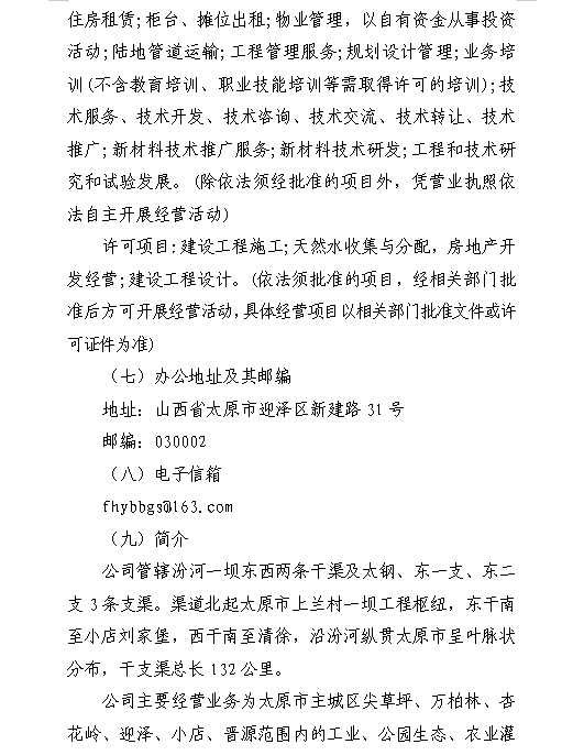 山西汾河一壩管理有限公司