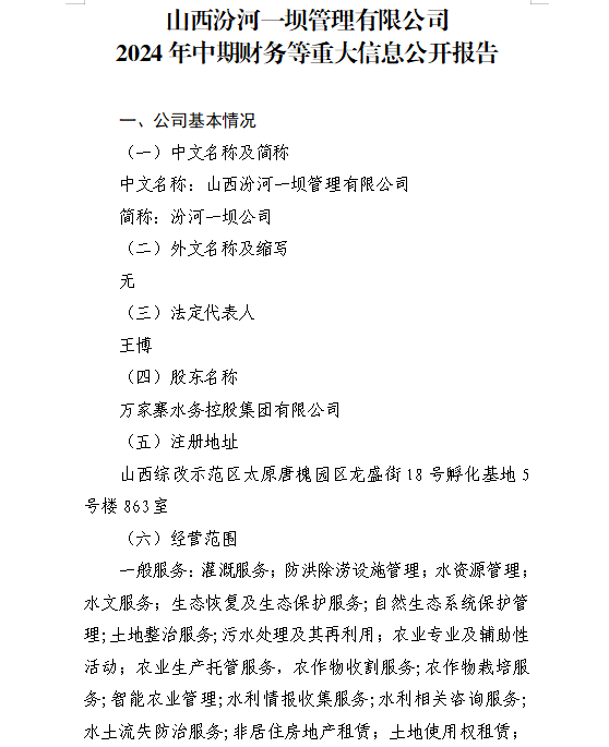 山西小浪底引黃水務(wù)集團(tuán)有限公司2024年中期信息公...