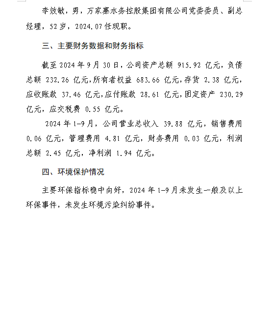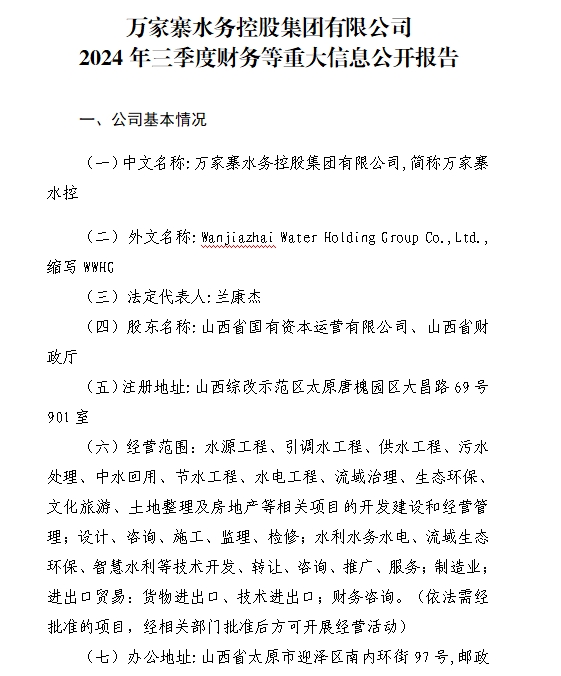 萬家寨水務(wù)控股集團(tuán)有限公司2024年中期財務(wù)等重大...
