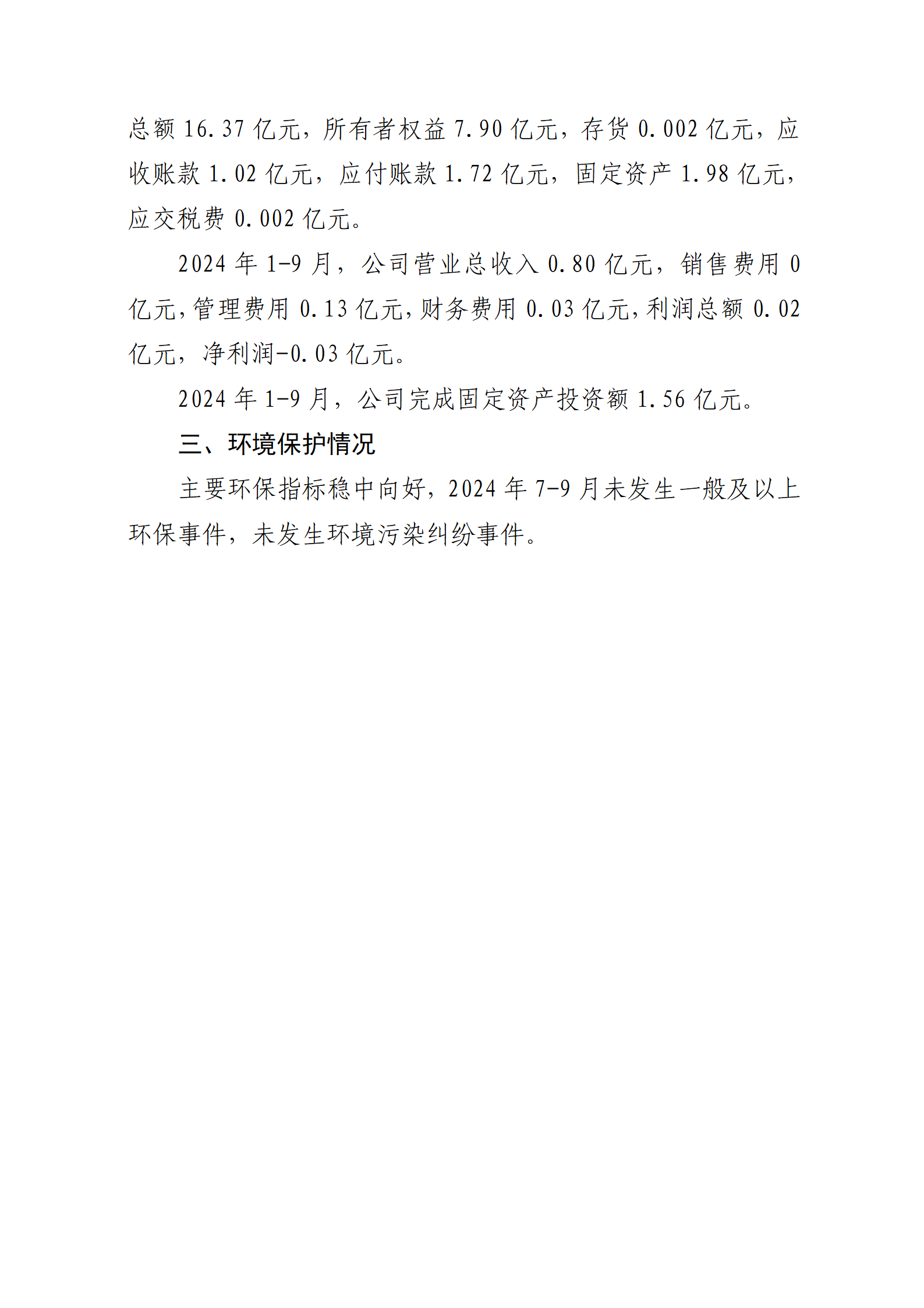 山西太忻滹沱河供水有限公司2024年第三季度重大信...
