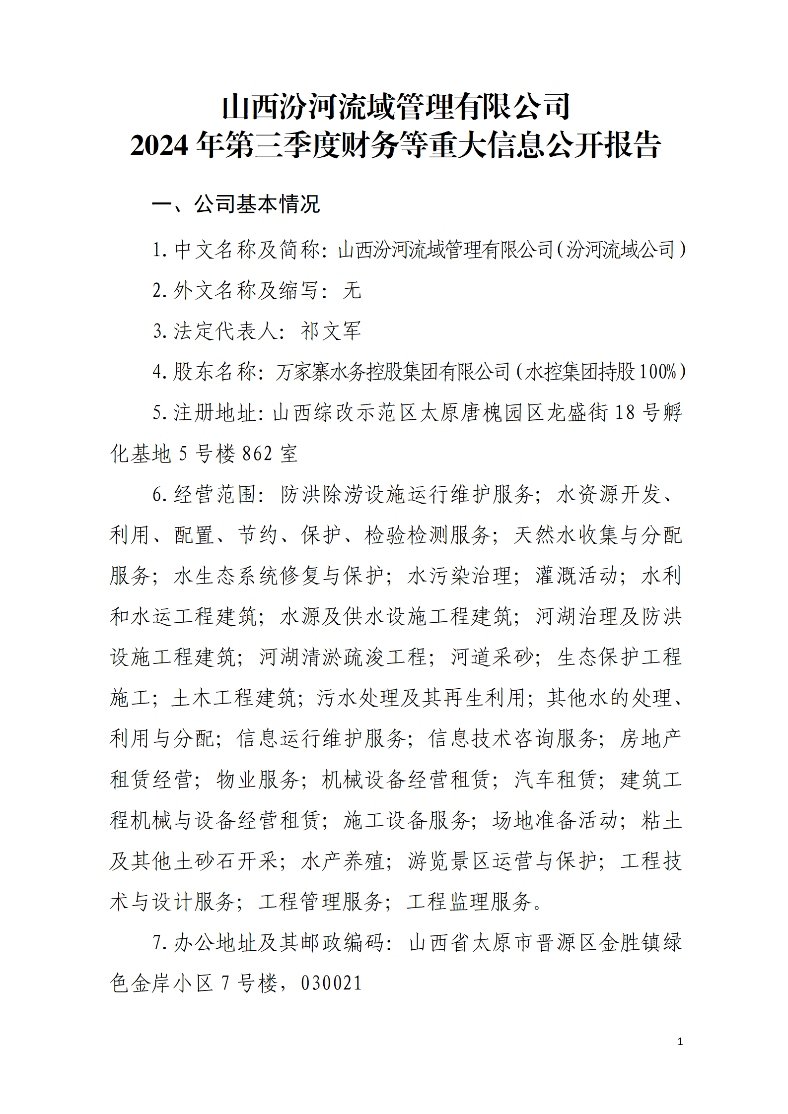 山西沁河水務(wù)集團(tuán)有限公司2024年中期信息公開(kāi)報(bào)告