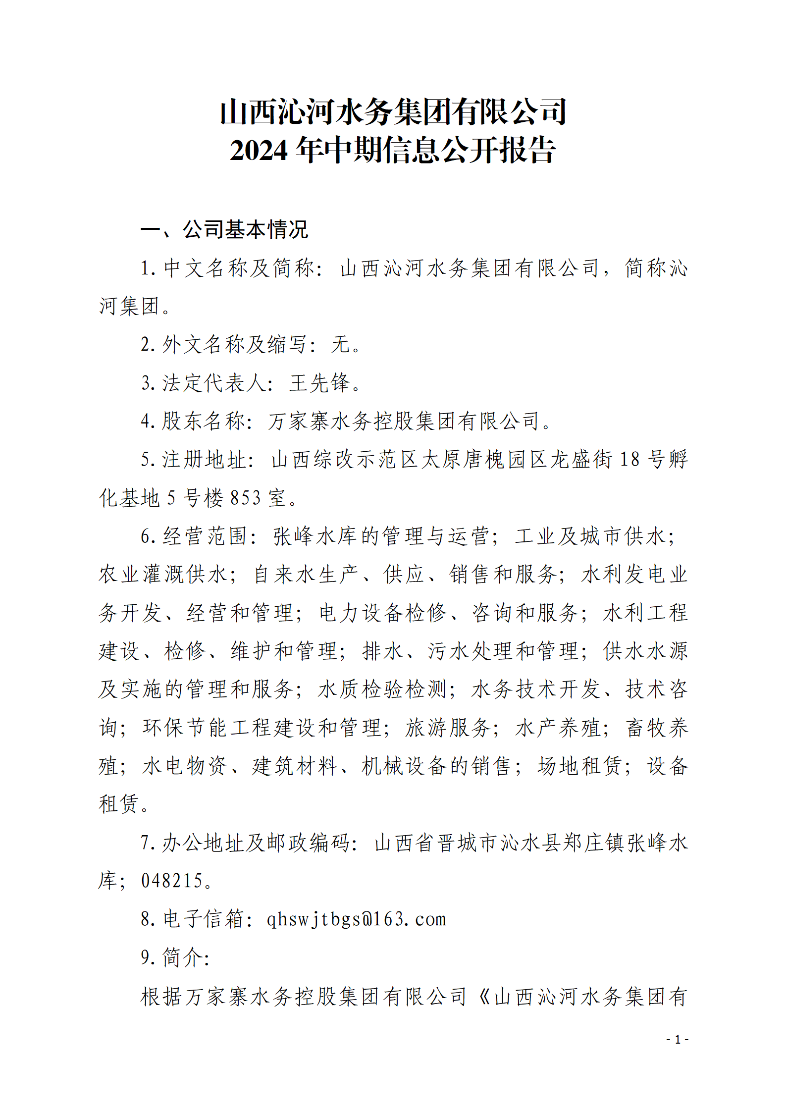 山西沁河水務(wù)集團(tuán)有限公司