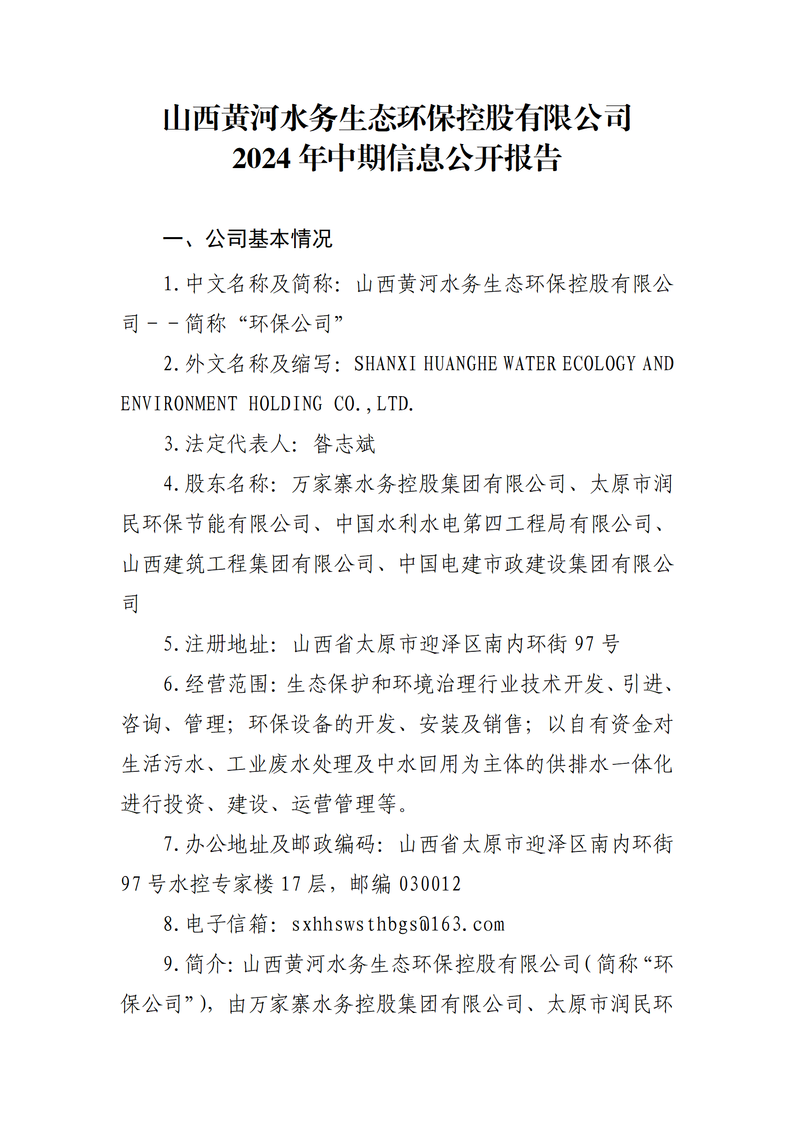山西黃河水務(wù)生態(tài)環(huán)保控股有限公司