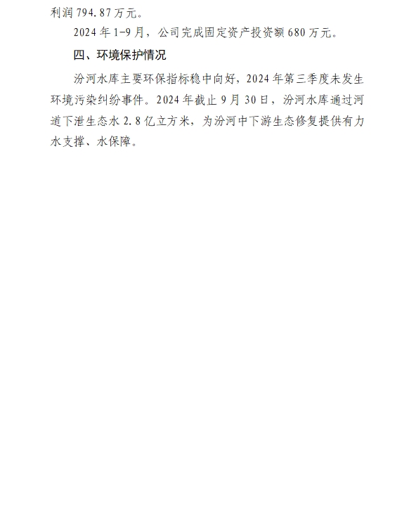 山西禹門口引黃水務(wù)集團(tuán)有限公司2024年第三季度信...