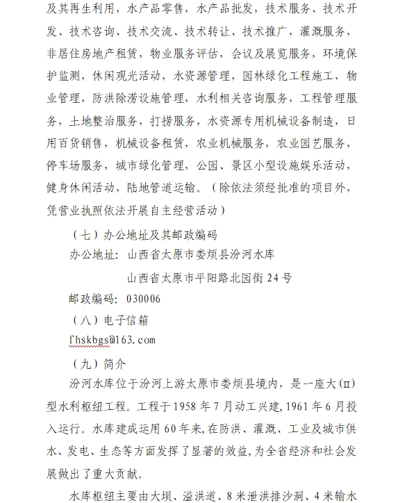 山西汾河水庫管理有限公司
