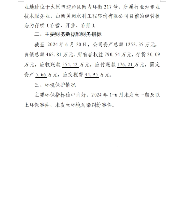 山西柏葉口水庫(kù)管理有限公司2024年中期信息公開報(bào)...