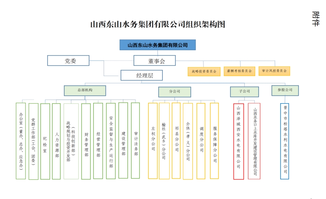 山西東山水務(wù)集團(tuán)有限公司組織架構(gòu)圖(見(jiàn)附件)。