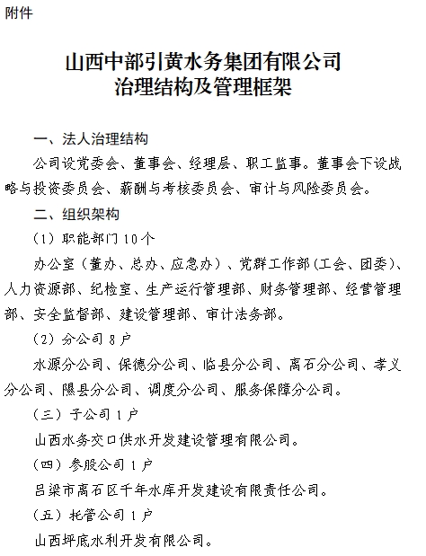 (一)中文名稱:山西中部引黃水務(wù)集團(tuán)有限公司