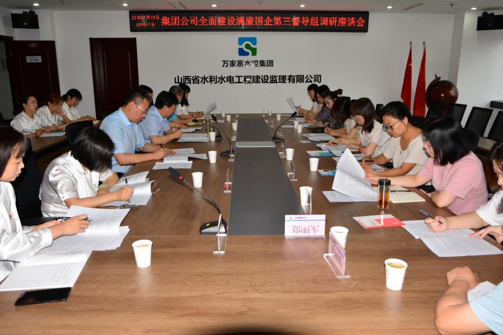 7月19日到20日,萬家寨水控集團(tuán)全面建設(shè)清廉國企第三督導(dǎo)組一行到水電監(jiān)理公司、水資所公司、水建咨詢公司、文化公司、水工咨詢公司、項(xiàng)目公司、水務(wù)監(jiān)理公司7家二級公司,圍繞清廉國企建設(shè)、“三重一大”決策制度執(zhí)行情況、綜合治理和公務(wù)用車情況開展了督導(dǎo)調(diào)研。此次督導(dǎo)采取交流檢查的方式,各單位黨務(wù)部門負(fù)責(zé)人參加,旨在相互交流學(xué)習(xí)、“以查代訓(xùn)”,發(fā)現(xiàn)亮點(diǎn),查找不足。