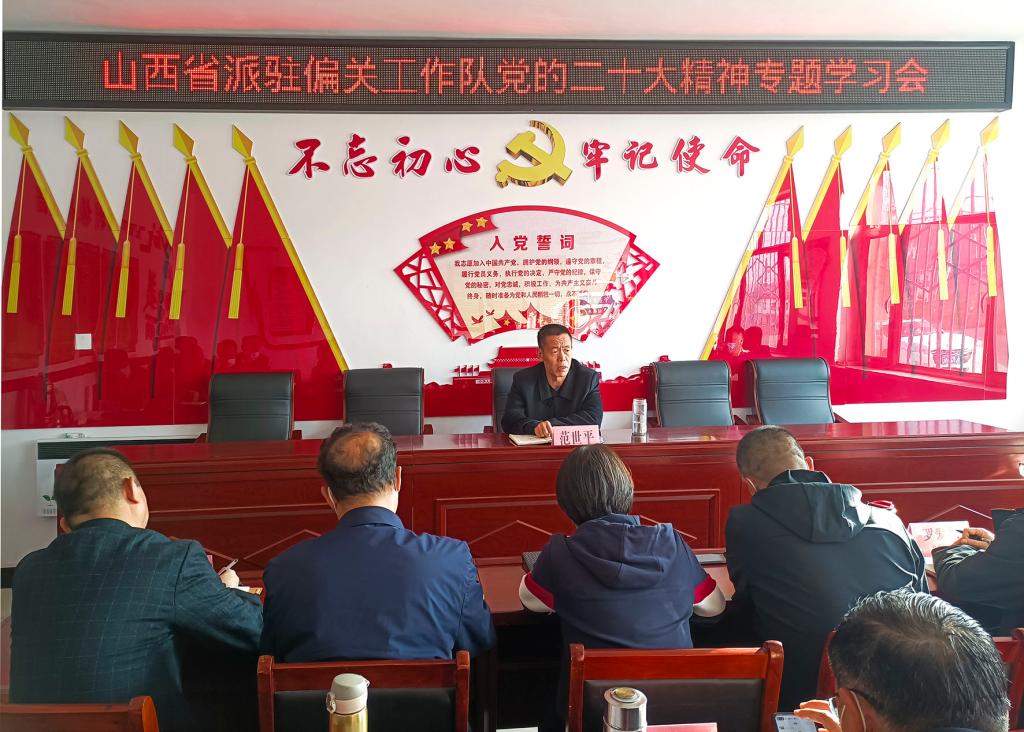 近日,萬家寨水務(wù)控股集團(tuán)黨委專職副書記、副董事長(zhǎng)范世平在偏關(guān)縣駐村幫扶工作隊(duì)宣講黨的二十大精神。強(qiáng)調(diào),要把學(xué)習(xí)宣傳貫徹黨的二十大精神作為當(dāng)前和今后一個(gè)時(shí)期的首要政治任務(wù),充分認(rèn)識(shí)駐村幫扶工作的極端重要性,以黨的二十大精神為指引,壓緊壓實(shí)工作責(zé)任,做細(xì)做實(shí)駐村工作,切實(shí)把學(xué)習(xí)宣傳貫徹成果轉(zhuǎn)化為全面推進(jìn)鄉(xiāng)村振興、加快農(nóng)業(yè)農(nóng)村現(xiàn)代化的實(shí)際成效。山西省派駐偏關(guān)縣文旅集團(tuán)、太原理工大學(xué)、黃萬公司、國(guó)網(wǎng)公司、省能監(jiān)辦等工作隊(duì)代表,水控集團(tuán)駐偏關(guān)縣工作隊(duì)全體隊(duì)員,幫扶村黨員代表參加。